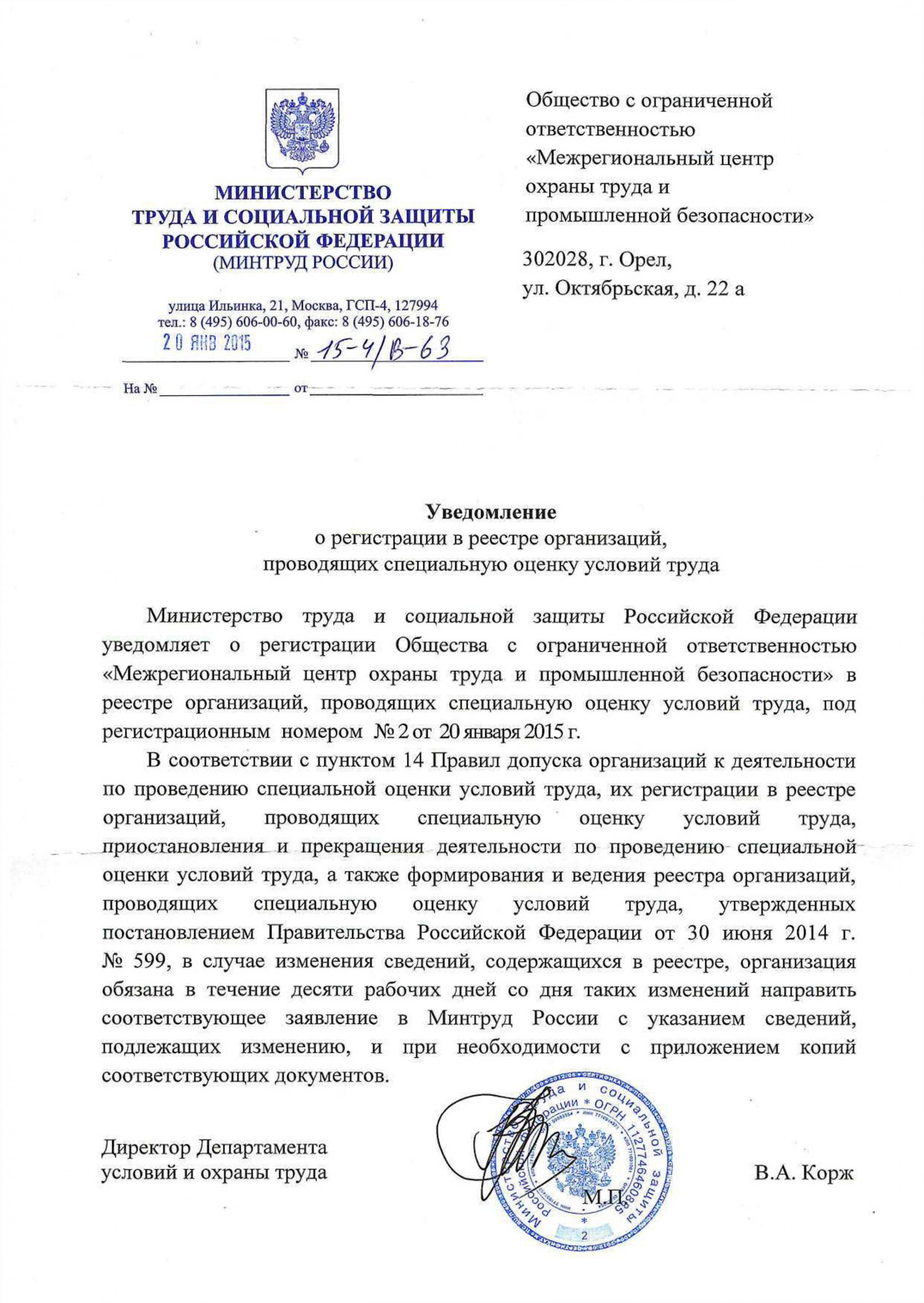 Специальная оценка условий труда осуществляется сотрудниками ООО «Межрегиональный центр охраны труда и промышленной безопасности» (ООО «МЦОТиПБ») включено в реестр организаций, оказывающих услуги по СОУТ при Минтруде России (регистрационный номер в реестре №2 от 20.01.2015г.). Наши специалисты и эксперты имеют опыт оказания услуг в области охраны труда с 2013 года. География оказанных услуг по СОУТ охватывает Орловскую, Брянскую, Курскую, Московскую, Калужскую, Липецкую, Кировскую и другие области.